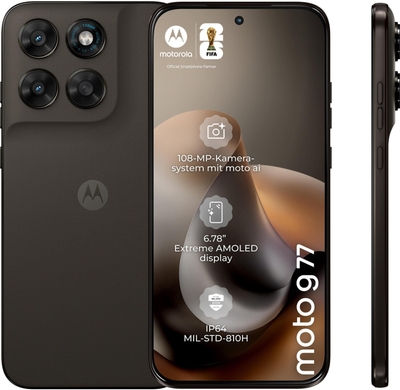 Motorola präsentiert das moto g77 – mit dem du die Facetten des Lebens genauer als zuvor erkunden kannst. Nimm mit der ultrahochauflösenden 108-MP-Kamera mit moto ai unglaublich lebensechte Fotos auf. Mit dem 3x verlustfreien Zoom kannst du auch bei Dunkelheit oder aus der Ferne schärfere und hellere Aufnahmen machen. Genieße Filme, Serien und Spiele auf dem 17,22 cm (6,78 Zoll) Extreme AMOLED Super-HD-Display mit 17 % schärferer Auflösung und fünfmal mehr Helligkeit. Die Pantone-Designs, Widerstandsfähigkeit nach Militärstandard, doppelt so guter Sturz- und Kratzschutz und Widerstandsfähigkeit gegen Wasser gemäß IP64 bieten die perfekte Kombination aus Style und Schutz. Außerdem erlebst du hohe 5G-Geschwindigkeiten, eine lange Akkulaufzeit mit TurboPower-Aufladen und immersiven Sound über Stereo-Lautsprecher. Mit dem moto g77 kannst du deiner Kreativität freien Lauf lassen.