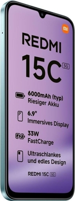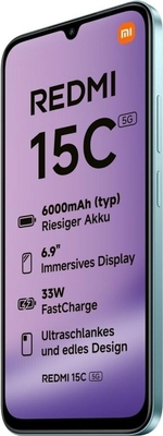 - Xiaomi Redmi 15C 5G, USB-C-Kabel, SIM Toolkit, Schutzhülle, Kurzanleitung, Sicherheitsinformation, Energielabel