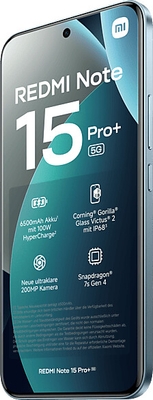 - Xiaomi Redmi Note 15 Pro+ 5G, Akku (fest verbaut), USB-C-Ladekabel, SIM-Auswurftool, Schutzhülle, Kurzanleitung, Sicherheitshinweise, Energielabel