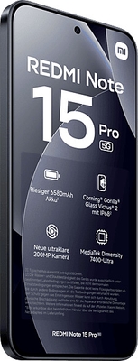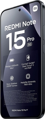 - Xiaomi Redmi Note 15 Pro 5G, Akku (fest verbaut), USB-C-Ladekabel, SIM-Auswurftool, Schutzhülle, Kurzanleitung, Sicherheitshinweise, Energielabel